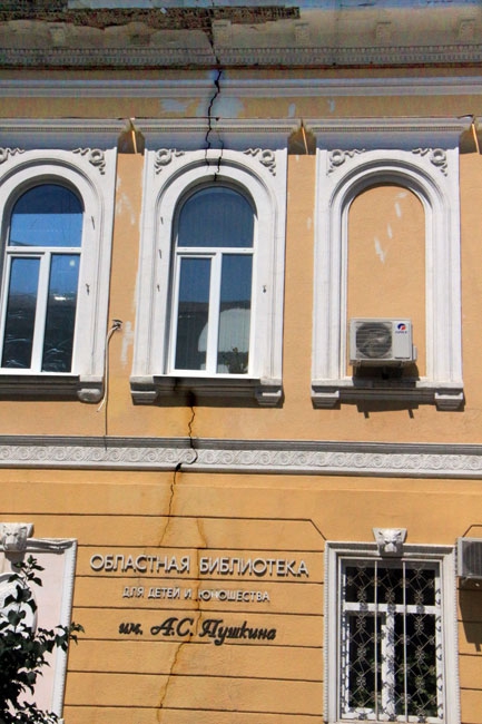 Здание библиотеки имени Пушкина делит пополам трещина