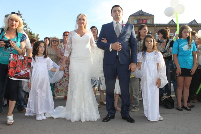 Много добрых слов было сказано в адрес многодетной семьи офицера Российской армии Андрея Леонидовича Свирского и его супруги Елены Евгеньевны, а также семей молодоженов Алексея и Ирины Степновых, Виктории и Анатолия Горшковых.