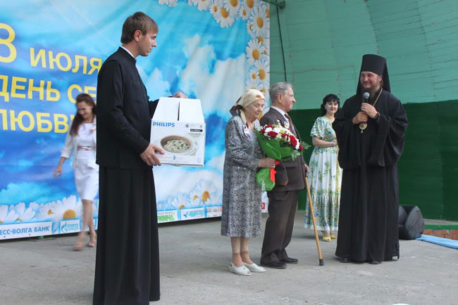 Зрители также приветствовали семьи ветеранов труда – Василия Григорьевича и Феодосию Ивановну Король, которые в браке уже 65 лет; Владимира Сергеевича и Галины Николаевны Барулиных, которые за 40 лет совместной жизни воспитали пятерых прекрасных детей, семерых внуков; Андрея Владимировича и Виктории Анатольевны Войтиных, у которых также пятеро детей.