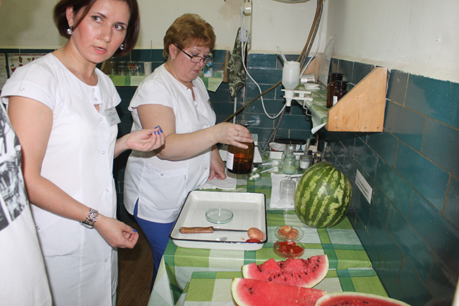 Ветеринарные специалисты взяли с прилавка арбуз для лабораторных исследований на содержание нитратов и в присутствии журналистов произвели необходимые пробы. Как показала экспертиза, превышения нормы содержания нитратов в исследуемом образце продукции не обнаружено. Арбузы из данной партии признаны годными к реализации на рынке.