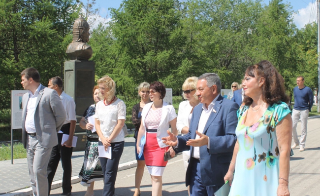 Также министр провел народных избранников по аллее с бюстами героев России.