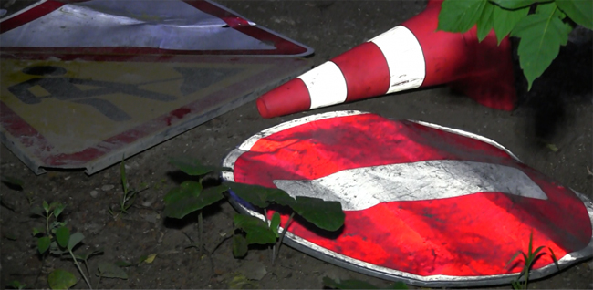 Задержанные водитель и пассажиры не смогли пояснить, откуда в салоне машины взялись дорожные знаки. Не исключено, что они были похищены с одной из улиц города.