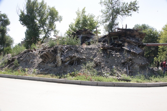 Следующим пунктом поездки уполномоченной стал снесенный аварийный дом по этой же улице. Разрешенное здание не огорожено и доступно для детей. Заметно, что подростки избрали его местом для своих игр. Неподалеку проверяющая увидела канализационный люк, прикрытый какой-то деревянной доской.