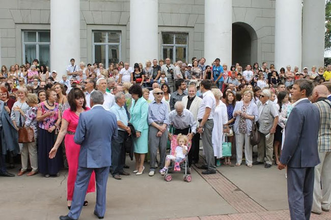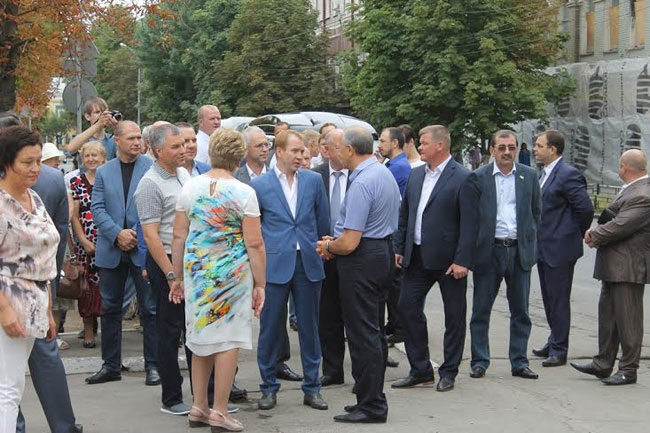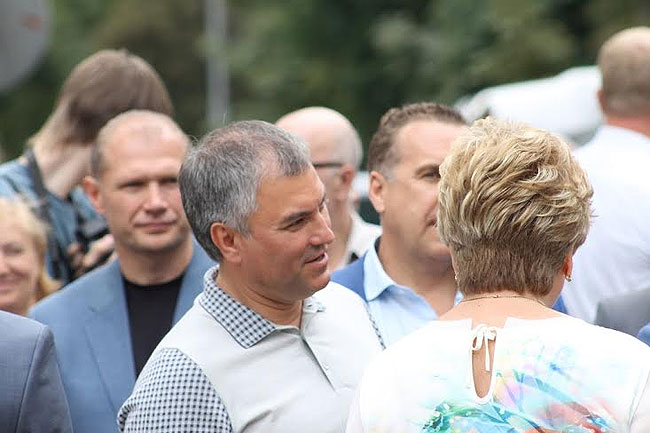 Рядом с Володиным стоят глава Саратова Олег Грищенко, губернатор Валерий Радаев, зампред Михаил Горемыко, глава администрации Александр Буренин, директор дворца творчества детей и молодежи Ирина Иванцова, депутат облдумы Алла Лосина. В церемонии открытия готовится принять участие и сам руководитель МХТ им. Чехова Олег Табаков.