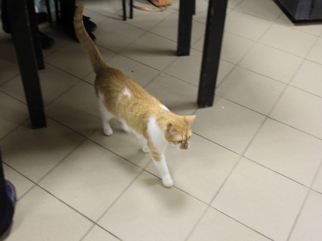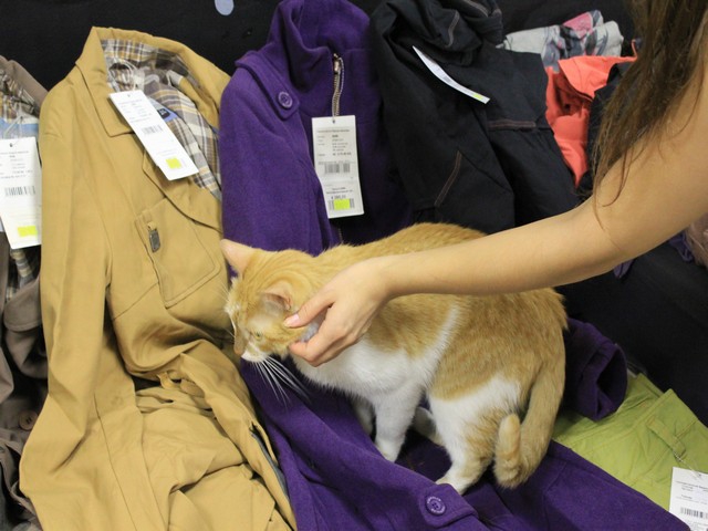 Бездомных животных на мероприятии не было. В кафе внимательно «следил» за покупателями местный обитатель – рыжий кот. Он охотно прогуливался между лотками, ничуть не стесняясь присутствия большого количества покупателей.