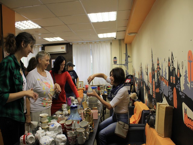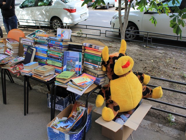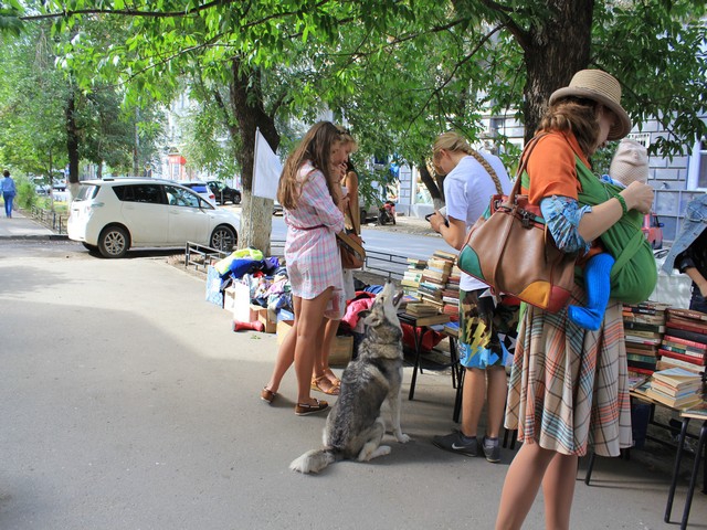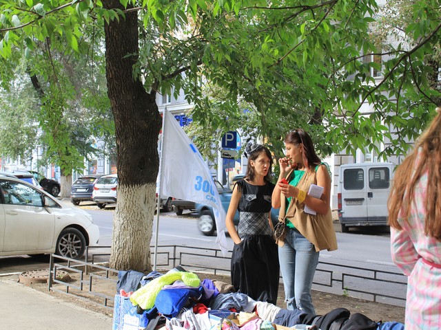 Вчера в Саратове прошла 3-я благотворительная распродажа. В антикафе на улице Большая Казачья и на территории около него организаторы – фонд «Зоо-Спас Саратов» - устроили ярмарку. Распродажа также получила название «гаражной». Все желающие могли предоставить организаторам ненужные уже вещи. Саратовцы приносили книги, одежду, обувь, посуду, косметику, игрушки, журналы, компакт-диски. Кроме того, на распродажу представили свои работы мастера декоративно-прикладного искусства. Были здесь и детские поделки, вышивка крестиком, рисунки. Организаторы продавали их за очень небольшие деньги. Например, 2-х томник Лермонтова стоил 80 рублей, хрустальная салатница несуществующего уже производства на заводе «Саратовстекло» - 150 рублей.