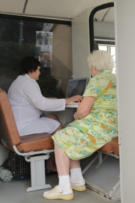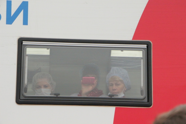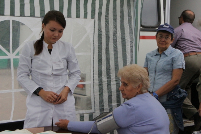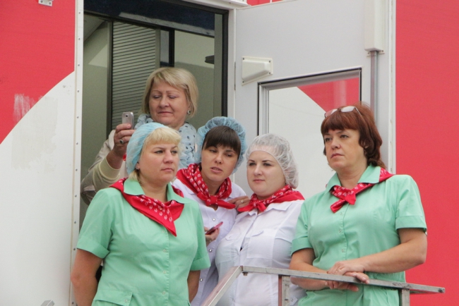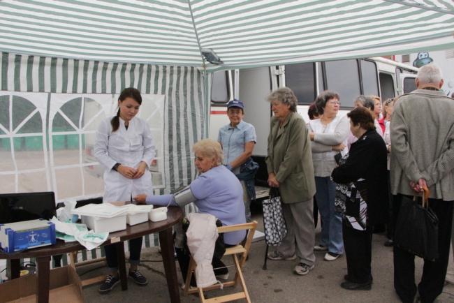 После небольшого приветствия участникам акции продемонстрировали местные мобильные центры оказания медицинской помощи и станцию по сбору крови.