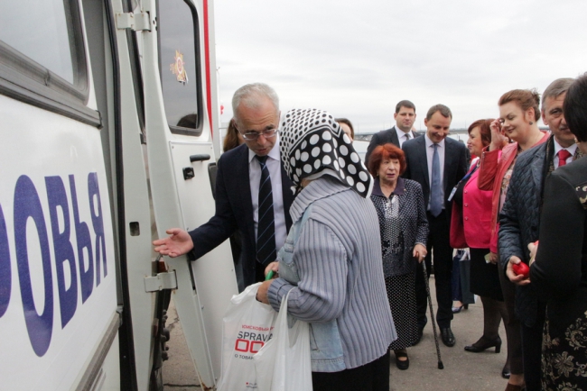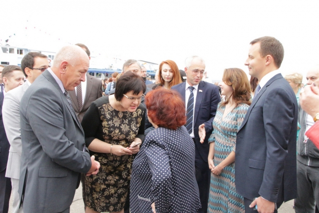 На теплоходе прибыли вице-президент общественной организации «Лига здоровья нации» Николай Кононов, известная российская фигуристка, призер Олимпийских игр, двукратная чемпионка мира Ирина Слуцкая и врачи в отрасли гинекологии, педиатрии, кардиологии и микрохирургии глаза из 8 лучших медцентров страны.