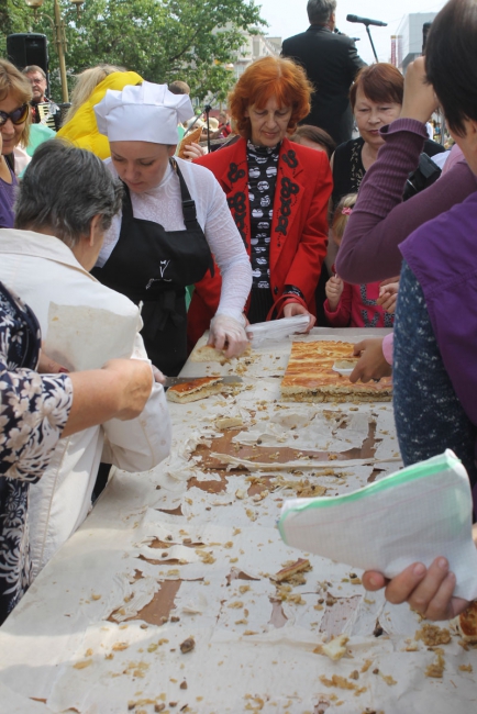 Затем вип-персоны переместились на площадь Кирова, где открылся овощной фестиваль «Осенняя рапсодия». На Аллее Роз были расставлены столы, на которых представители фирм, вузов, а также школ разложили разнообразные ягоды и овощи, а также поделки из них. Там же открылась выставка пугал. Валерий Радаев осмотрел фестиваль, глава администрации Фрунзенского района Стефанида Тимохина в частности, показала ему гигантские лимоны, помидор и перец, выращенные в Саратове, гости охотно фотографировались с участниками праздника. После этого они отправились дальше – на Увек, где открылся фестиваль реконструкции «Один день из жизни средневекового города».