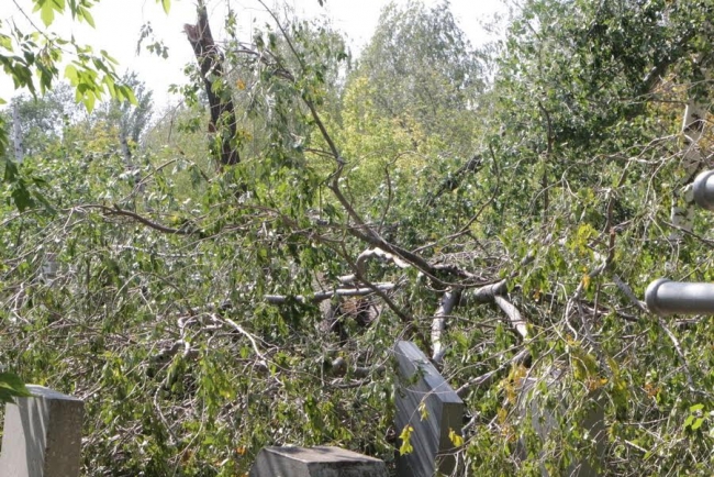 В ночь на субботу на территории Саратовской области прошел шквалистый ветер, который повредил ряд объектов. По предварительным данным, серьезный урон непогода нанесла Елшанскому кладбищу в Ленинском районе Саратова.