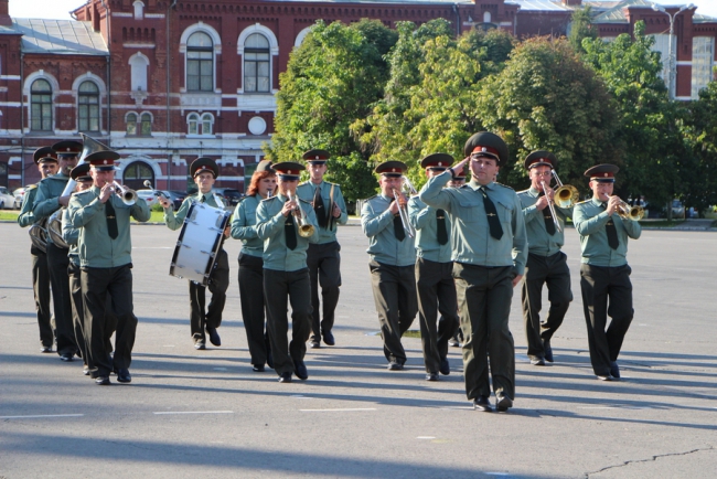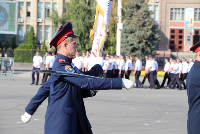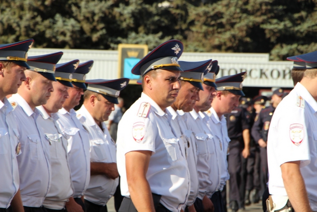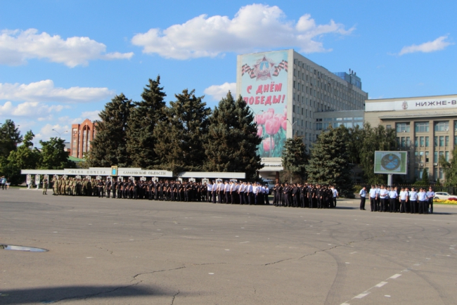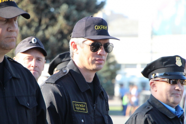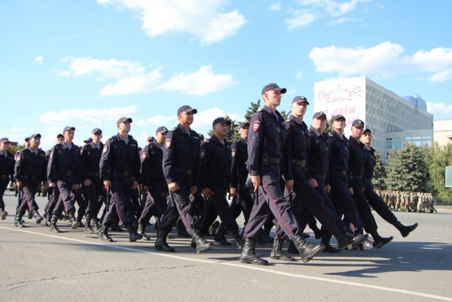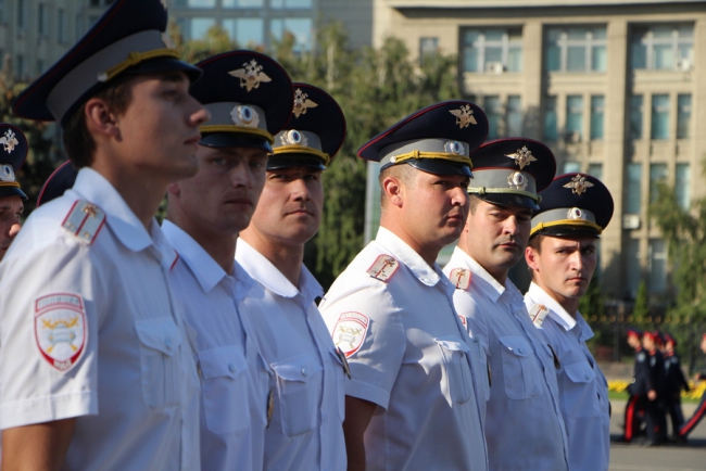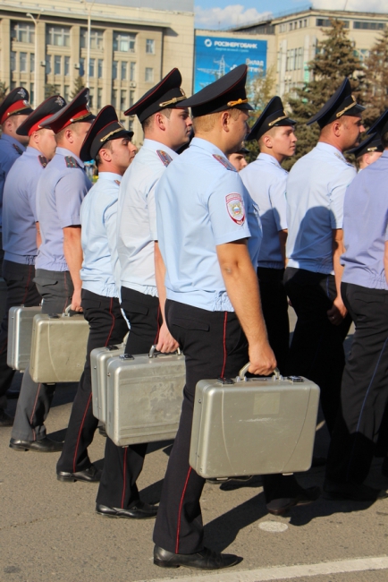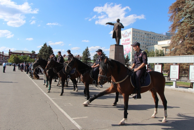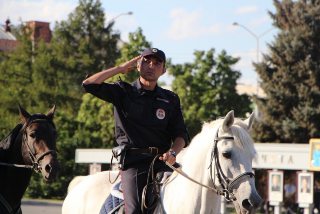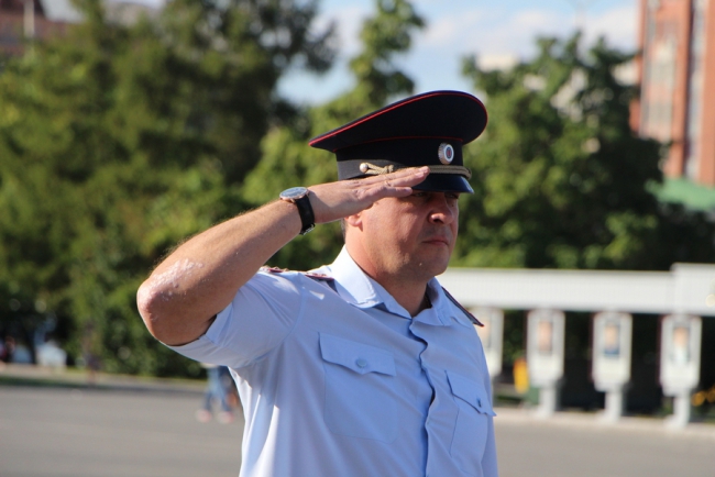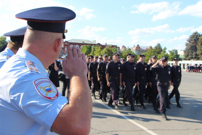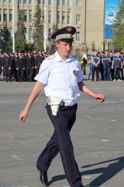 В самом начале развода колонны из полицейских, кинологов, сотрудников группы быстрого реагирования, ОМОНовцев, конного патруля и народных дружинников прошли по Театральной площади. После чего личный состав приветствовал полковник Калинин. Далее он дал указания к осмотру сотрудников полиции на наличие жетонов, удостоверений и необходимого оружия.