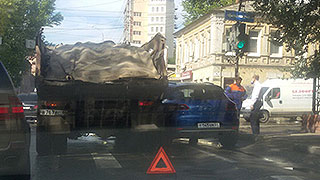 По предварительной информации, самосвал и дорогостоящий кроссовер двигались в попутном направлении по улице Рабочая и не поделили дорогу. В результате чего произошло боковое столкновение по касательной. По некоторым данным, за рулем «Порше» находилась женщина.