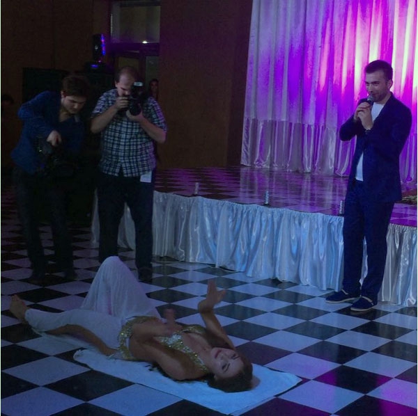 Саратовчанка исполнила восточный танец с современными мотивами. После этого она решила поразить всех своей выносливостью и прошлась по битому стеклу, а в завершении легла на осколки спиной.