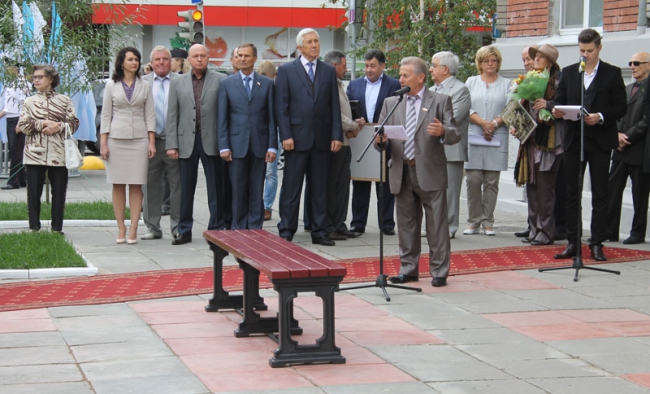 Затем архитектор Борис Донецкий, принявший участие в открытии булгаковского уголка, открыл бутылку шампанского, вылил часть спиртного на барельеф, а другой гость - руководитель научно-методического отдела Московского музея-театра «Булгаковский дом» Ирина Горпенко-Мягкова «освятила» им скамейку.