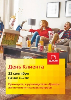 23 сентября в сервисном центре «Дом.ru» в г.Саратове пройдет День Клиента.