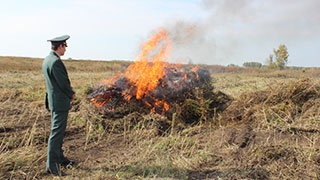 В Балакове Саратовской области сотрудники управления федеральной службы по контролю за оборотом наркотиков уничтожили почти 120 тонн конопли.