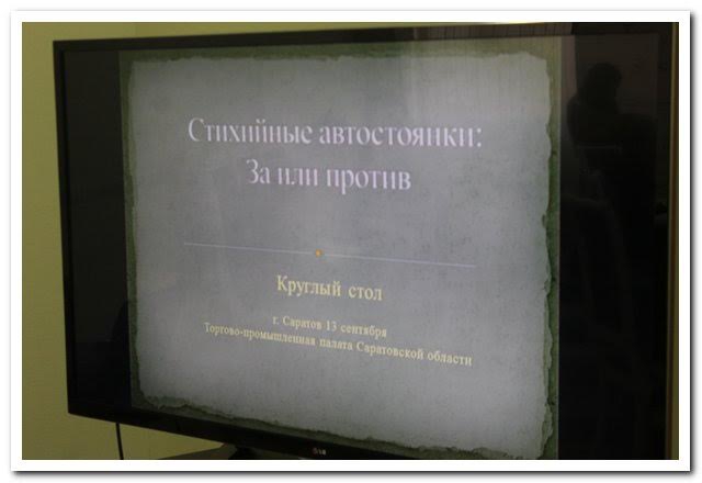 В самом начале встречи было показано видео с пустующими платными автостоянками и забитыми машинами дворами Саратова.