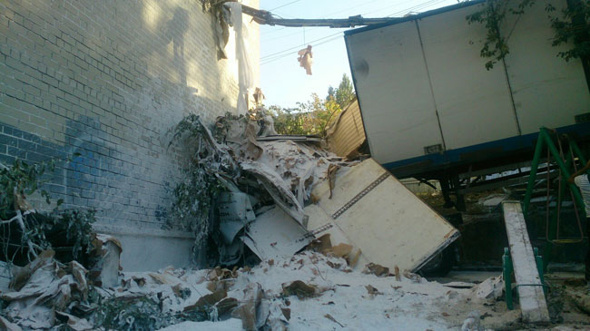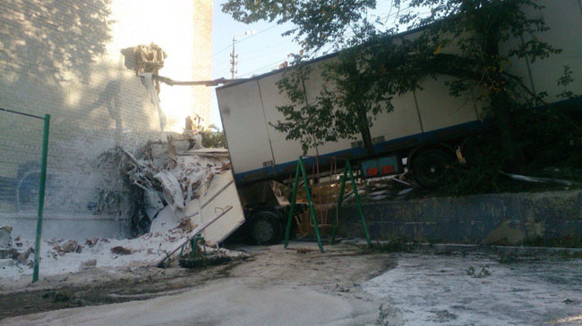 В Саратове водитель фуры разбился, протаранив многоквартирный дом
