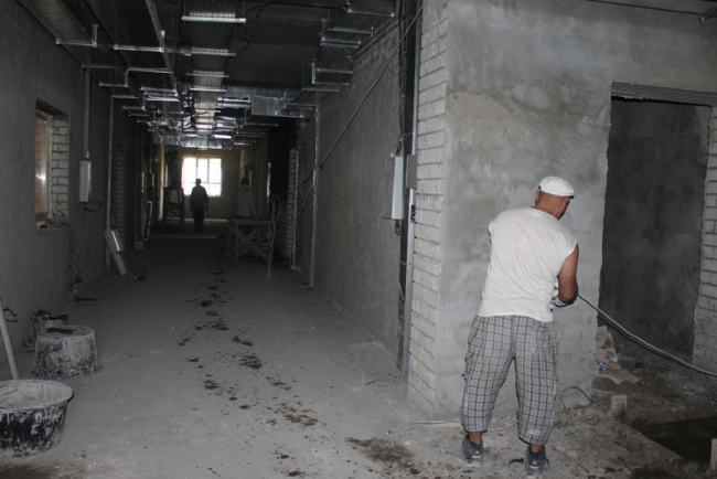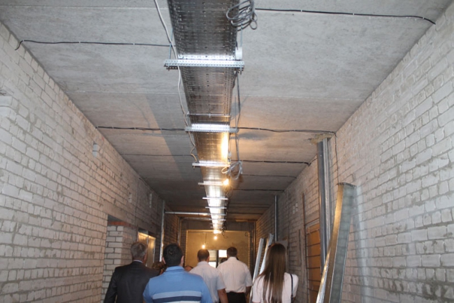 Затем проверяющие прошли по нескольким этажам здания и даже забрались под крышу. Планируется, что в корпусе будут находиться хирургическое и реанимационное отделение. Особенно придирчиво осматривал полы и стены заместитель главы ОПы Сергей Утц. Так, он раскритиковал стяжку на полах.