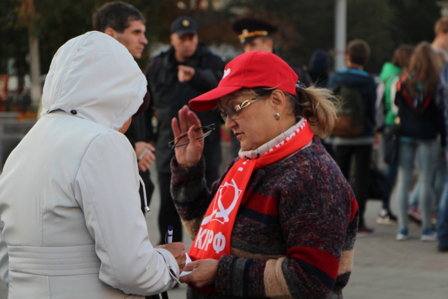 В минувшую субботу у Крытого рынка в Саратове состоялась встреча депутата Государственной думы от КПРФ Ольги Алимовой с избирателями. На мероприятии ее сопровождало около 20 активистов обкома партии с флагами в руках. Среди них были секретарь обкома Александр Анидалов и депутаты гордумы Андрей Турунтаев и Денис Шумихин.