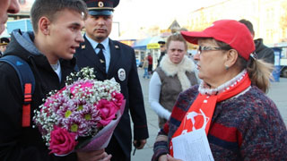 «Я просто недавно на форуме был, с Геннадием Андреевичем за руку жался и хотел бы просто Ольге Николаевне подарить букет, поздравить с праздником прошедшим ее - Днем пожилого человека», - пояснил свое рвение молодой человек.
