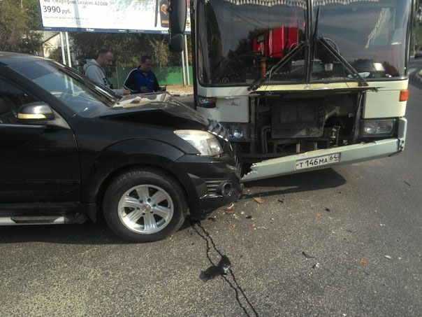 Сегодня в центре Саратова случилось ДТП с участием автобуса. Как сообщают очевидцы, авария произошла сегодня днем недалеко от Парка Победы.