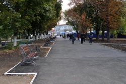 Руководитель Фрунзенского района Стефанида Тимохина в ходе сегодняшнего осмотра доложила Олегу Грищенко, что в настоящее время завершен комплекс работ по благоустройству части сквера (между храмом и фонтаном «Одуванчик»). Со времени сноса незаконных ларьков на этом участке Аллеи роз были высажены цветы, перепланированы и расширены пешеходные дорожки.