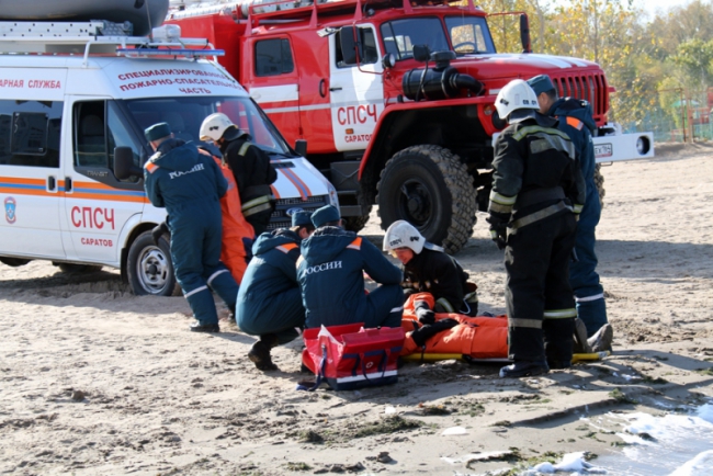 Как сообщила пресс-служба ГУ МЧС, спасатели отработали две легенды учений. По одной из них, на реке Сазанка Энгельсского района произошел отрыв льдины от берега с находящимися на ней рыбаками. О «происшествии» по телефону «112» сообщили очевидцы.