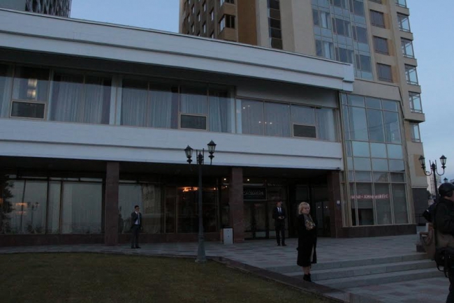Тем временем, подъехавшие на автобусе к гостинице участники совещания сразу отправились к входу в ресторан.