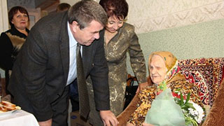 В Балакове Саратовской области сотрудники отделения Пенсионного фонда навестили одну из самых пожилых женщин региона - 102-летнюю Агафью Тихомирову. В качестве презента ей вручили микроволновую печь.