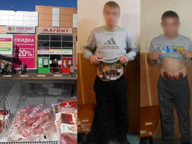 30 октября в дежурную часть полиции поступило сообщение о том, что двух молодых людей, похожих по приметам на разыскиваемых, видели в районе гипермаркета на проспекте Ленина. «Прибыв на место, по приметам сотрудниками ГИБДД были задержаны двое граждан, у которых при личном досмотре обнаружены колбасные изделия. Откуда у них столько колбасы, задержанные пояснить затруднились», - поведала пресс-служба.
