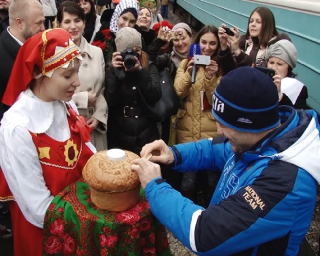 Дациев прибыл поездом «Москва - Алма-Ата». Встречали его по русскому и кавказскому обычаям: хлебом-солью и лезгинкой. Встречающие подготовили плакаты «Даци - с победой!» и «Даци - чемпион». Коллеги-единоборцы несколько раз подбросили Даци в воздух.