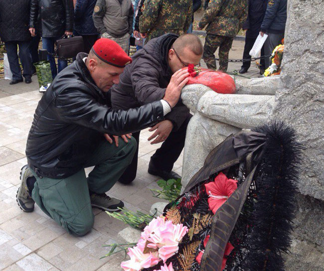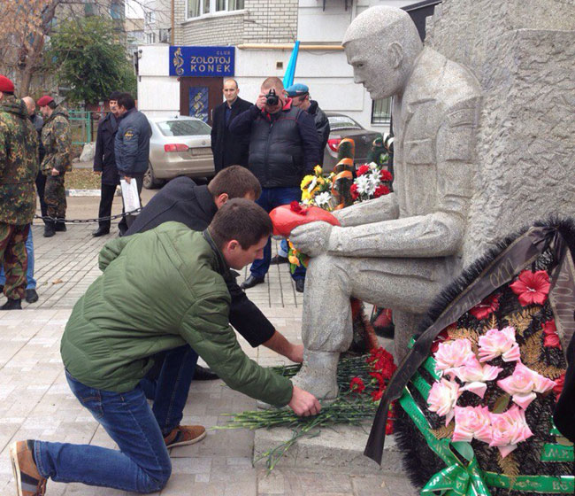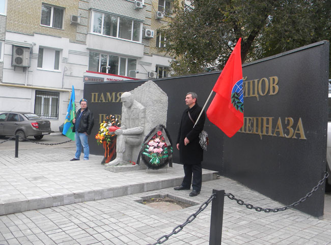 Завершилась церемония минутой молчания в память о погибших в боевых действиях разведчиках. После этого все присутствующие возложили цветы к памятнику.
