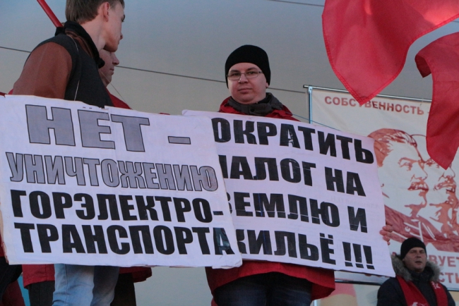 Основными лозунгами митинга стали призывы к сокращению платы за коммунальные услуги, сохранению МУПП «Саратовгорэлектротранс» и отмене платы за капремонт.