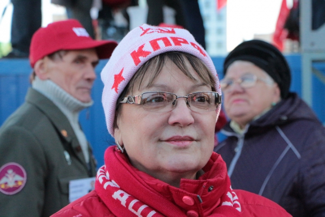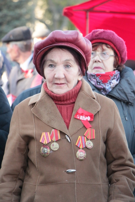 Затем слово было предоставлено госдепу Ольге Алимовой, которая поздравила единомышленников с праздником, отмечавшийся широко во времена Советского Союза. В своей речи она обратила внимание, что решение отменить празднование 7 ноября является попыткой забыть неугодные для нынешней власти моменты истории.