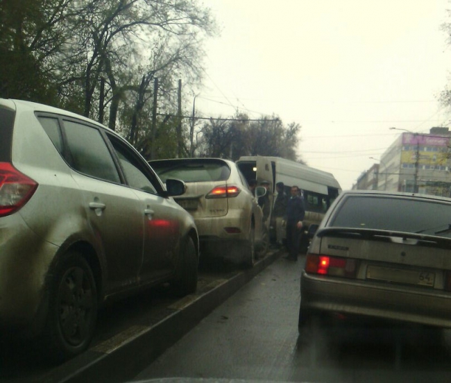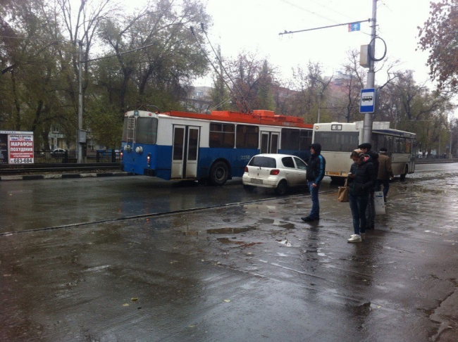 Сегодня в Кировском районе Саратова произошла дорожная авария с участием троллейбуса и автобуса.