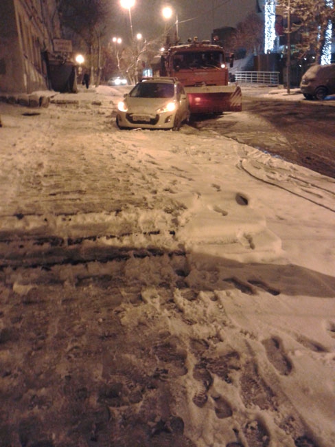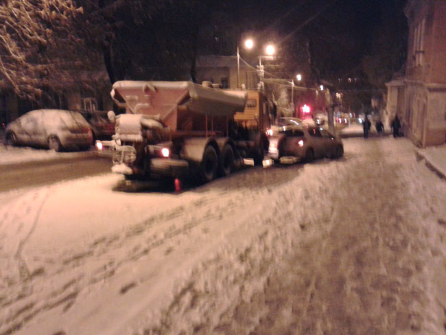 В Саратове расчищавший снег «КамАЗ» зацепил ковшом припаркованную иномарку