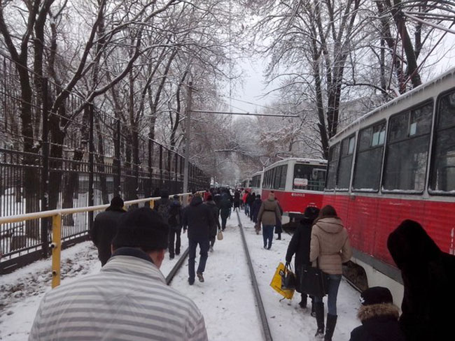 Трамвай следовал в сторону центра города и недалеко от остановки общественного транспорта сошел с рельсов. В результате ЧП больше 1,5 часов было парализовано движение трамваев маршрутов №№ 3 и 11. На путях образовалась пробка, и людям приходилось идти пешком.