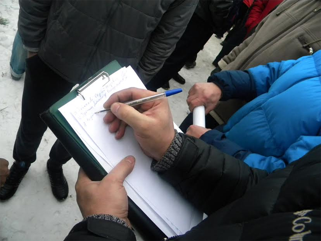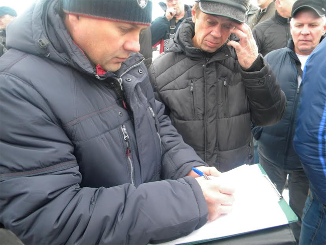 Также на месте собираются подписи под обращением президенту России Владимиру Путину с просьбой отменить взимание платы.