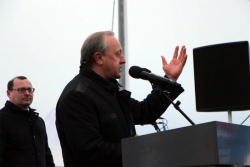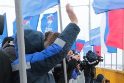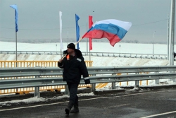Затем было запущено движение по трассе. Колонна из двух десятков грузовиков проехала по ней.