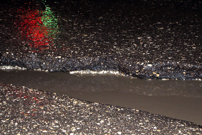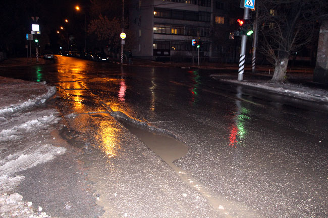 Первым наткнулся на дорожное препятствие в виде ямы длиной почти 3 метра и глубиной до 20 см автомобиль «Форд Фьюжн». Произошло это около 17.30 напротив дома №25/39 по Хользунова. Водитель иномарки Валерий Сыротюк рассказал, что не смог заметить провал, потому что со стороны он смотрелся как обыкновенная лужа, а никаких предупреждающих знаков вокруг не было. В результате у «Форда» пострадало переднее левое колесо: деформировался диск и порвалась шина.