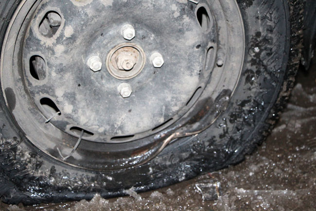 За время общения с автомобилистом журналист стал свидетелем того, как в дорожный провал попала еще одна машина - «ВАЗ-2110». На этот раз лопнуло переднее правое колесо. Его автолюбителю пришлось менять на месте.