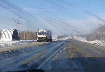 Дополнительная опасность возникает у тех, кто преодолевает путь рядом с большегрузами. Под их колесами ледяная масса дробится и разлетается по стеклам других машин.