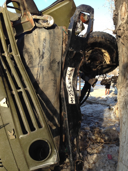 Корреспонденту «Четвертой власти» очевидцы рассказали, что грузовик (госномера Саратовской области) спускался по Симбирской со скоростью около 100 км/час. По предварительной информации, у «КамАЗа» отказали тормоза. Основной удар большегруза пришелся на «Мерседес», кроме того, он задел еще несколько машин. После этого он врезался в дерево и перевернулся. Водительская кабина полностью разбита.