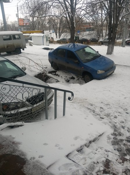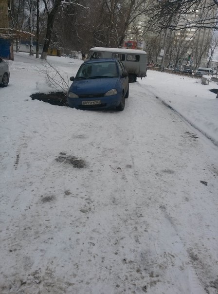 Сегодня в Кировском районе Саратова «Лада Калина» провалилась в дорожную яму. Как сообщили очевидцы в соцсетях, инцидент произошел около дома №43 на улице Тракторной.