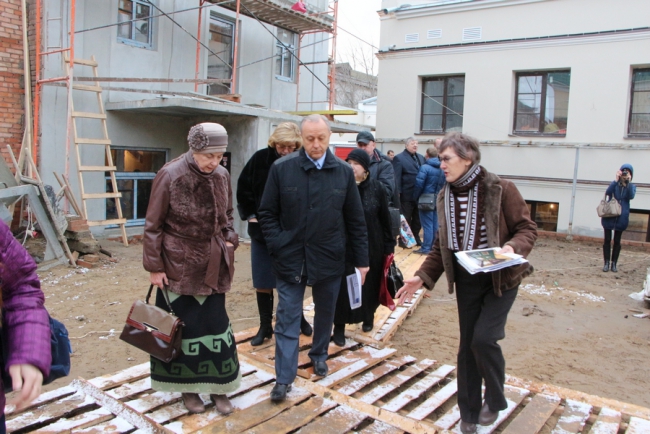 После чего предложили осмотреть помещения будущей галереи. Пройдя несколько комнат, губернатор и сопровождающие оказались на небольшой застекленной веранде. Там планируется сделать читальный зал, сообщили главе региона.