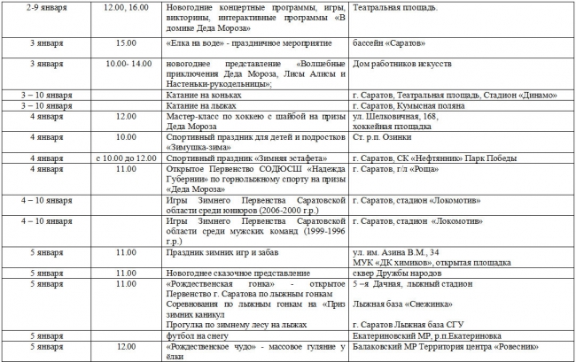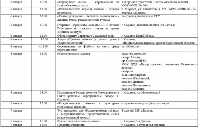 С 1 по 10 января жителей Саратова приглашают на массовые катания на коньках и лыжах, поучаствовать в Рождественских гуляниях и других спортивно-развлекательных мероприятиях.