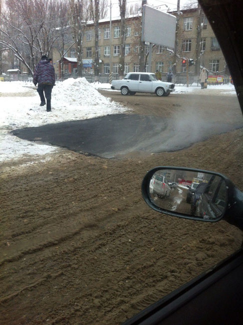 Примечательно, что в настоящий момент на улице идет мокрый снег. Кроме того, из-за потепления на дорогах города образовалась слякоть, но и этот факт не мешает рабочим укладывать дорожное полотно.