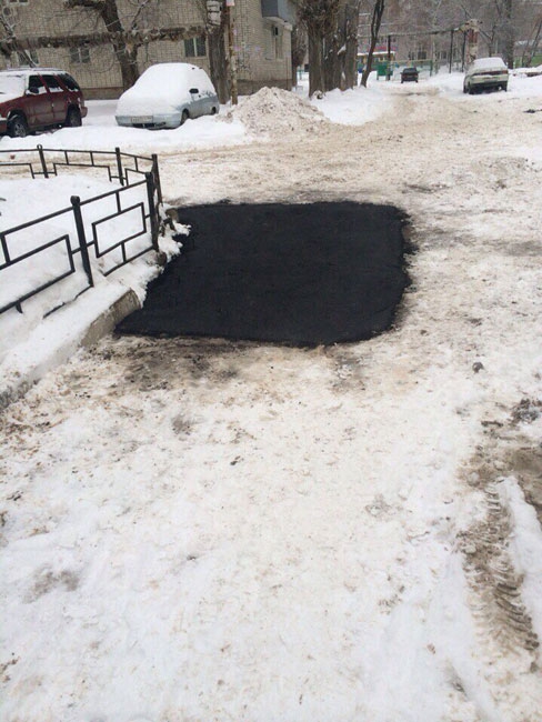 Снегопад не остановил в Саратове укладку асфальта