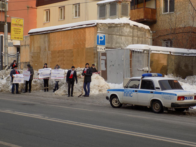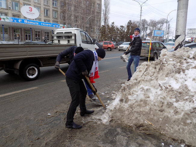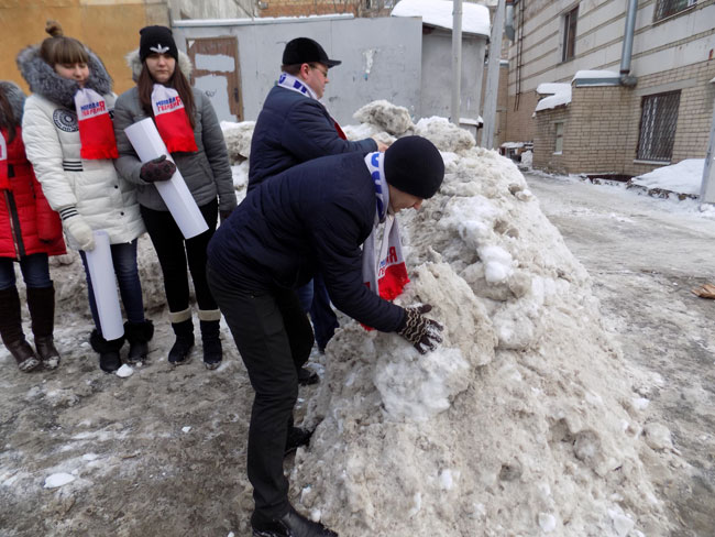 Сегодня в Саратове активисты «Молодой Гвардии Единой России» построили «остановочный павильон» из снега на улице Радищева, напротив Социально-экономического института имени Плеханова. Таким образом молодые люди решили объяснить жителям города, что в данном месте нет остановки общественного транспорта.